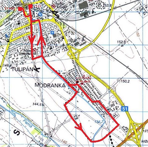 Trasa tento raz povedie cez Dohnányho, Zelenečskú a Mikovíniho ulicu až do Modranky. Následne okolo miestneho futbalového ihriska po Sereďskej, Jarnej a Dedinskej ulici až do reštaurácie Pemino, kde bude malá zastávka.