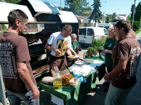 Každá piváreň prichystala účastníkom iné pokušenia. V Trnavskom dvore stavili na osvedčeného pečeného býka. Foto: autor