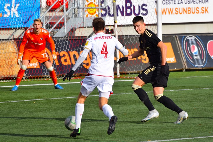 Dorastenec Tomáš Vaško (v čiernom) nastúpil na prvý zápas za mužov Spartaka. Foto: Ján Král