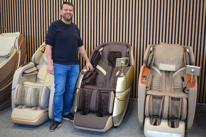 Stanislav Čaklovič zo spoločnosti Damico pri masážnych kreslách.