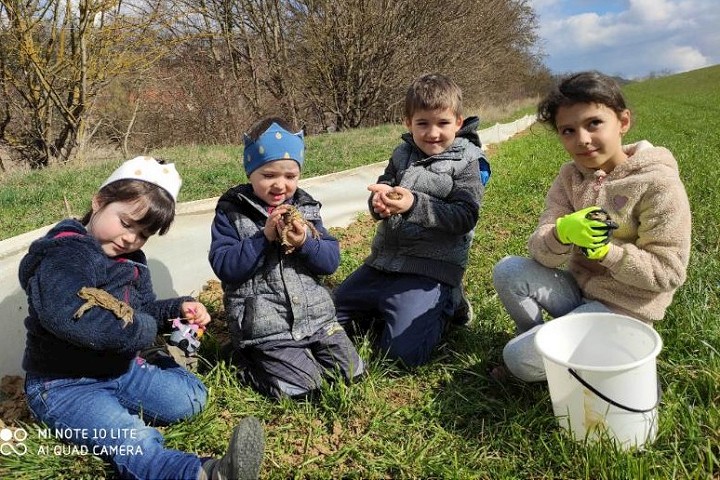 Prenášanie ropúch cez cestu je činnosť užitočná, pre deti aj celkom zábavná. FOTO: Rezort Piešťany