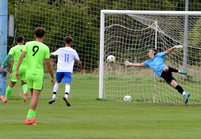 V 27. minúte sa bravúrnym zákrokom blysol aj hosťujúci gólman Fabián Čiernik, ktorý svojou ľavačkou v poslednej chvíli vytlačil loptu smerujúcu do jeho svätyne na rohový kop.