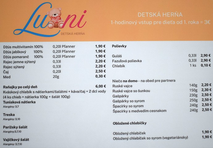 Vstup pre najmenšie detičky je zdarma, za deti od jedného roku sa platí 3 eurá. Rodičia majú vstup bezplatný, počas toho ako sa ich dieťa hrá, si môžu vychutnať kávu a koláčiky z aktuálnej ponuky.