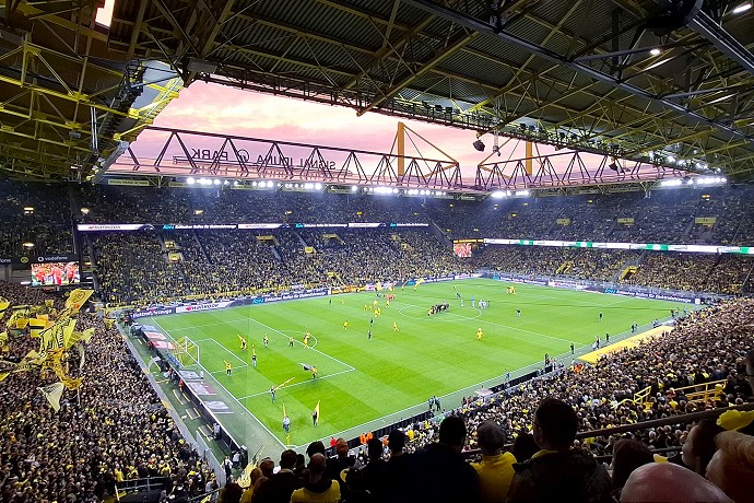 Štadión Borussie Dortmund má charakteristickú konštrukciu, ktorá patrí k dominantným siluetám mesta.