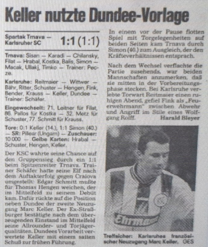 Našli sme aj článok o zápase Intertoto Cup-u (rok 1996) medzi Spartakom a Karlsruher SC, kde nesedeli nielen mená ale ani posty.