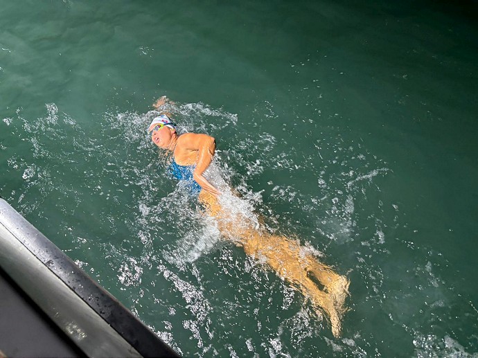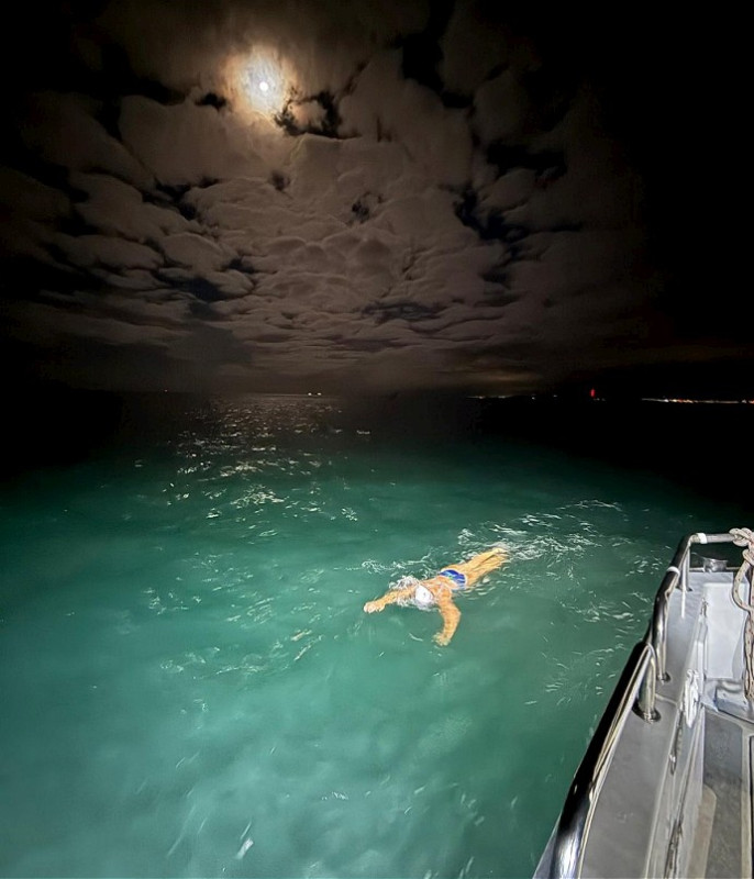 „Máme za sebou tréningy plávania v noci, takže to nebol problém. Loď bola osvetľovaná, svietila na dráhu, plavec sa mal držať v osvetlenom priestore. Pre mňa bolo najhoršie skočiť do vody, potom to už išlo. Lepšie sa mi plával druhý úsek za svetla, predsa len, počas noci bola aj väčšia zima, aj telo ešte spí.“