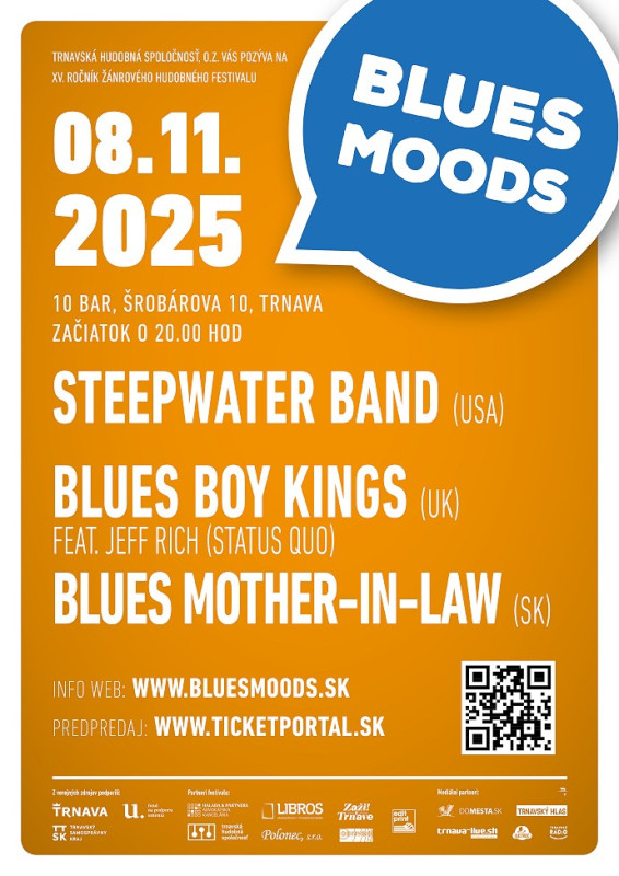 Medzinárodný hudobný festival Blues Moods prináša vo svojom pätnástom ročníku pestrú prehliadku bluesového hudobného žánru priamo v užšom centre Trnavy.