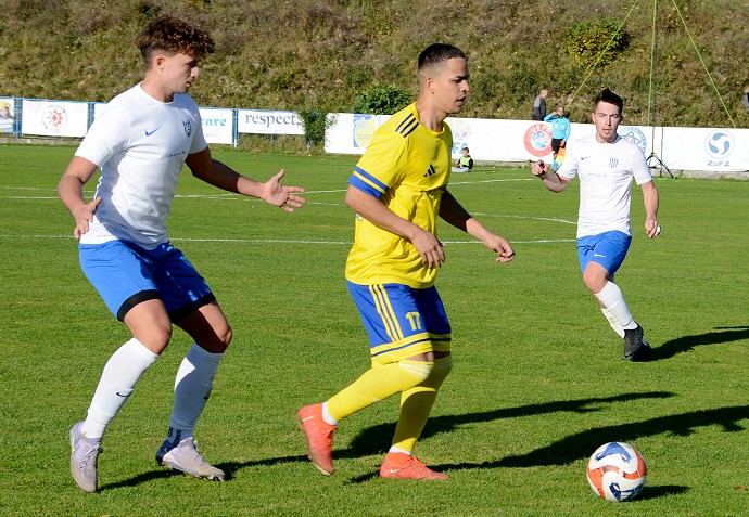 Po jednom z rohov v druhom polčase Cíferčan Erik Korbelič nedokázal zužitkovať takúto šancu, keď sa ocitol sám pred brankárom Michalom Košinárom a Erikom Spálom (č. 7).