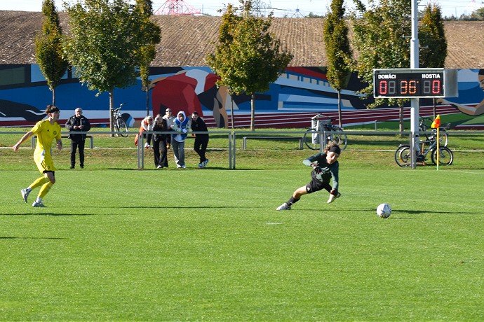 Zavar mohol skórovať už v prvom polčase, Peter Blanárik však svoj únik z ľavého krídla zakončil strelou po zemi tesne vedľa žrde. Foto: Ján Král