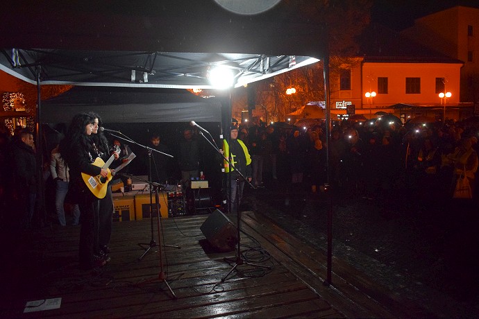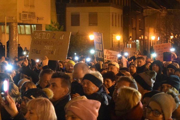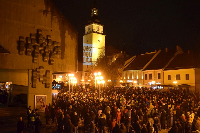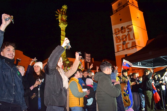 V Trnave na Trojičnom námestí 36 rokov od Nežnej revolúcie ľudia opäť štrngali kľúčami. Na Mestskej veži svietil 17. novembra nápis Dosť bolo Fica a prítomní na protestnom zhromaždení požadovali jeho odchod.