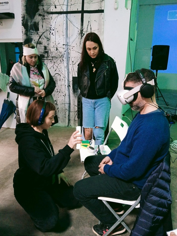 Workshop Embodied Narratives využil technológiu „Machine To Be Another“ od BeAnotherLab – účastníci vďaka senzorom „vymieňali telá“ a skúmali identitu cez empatiu a prepojenie.