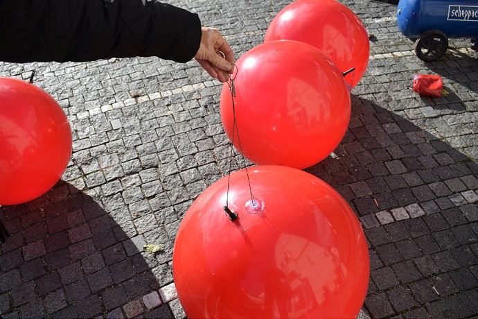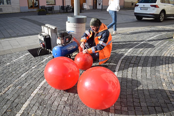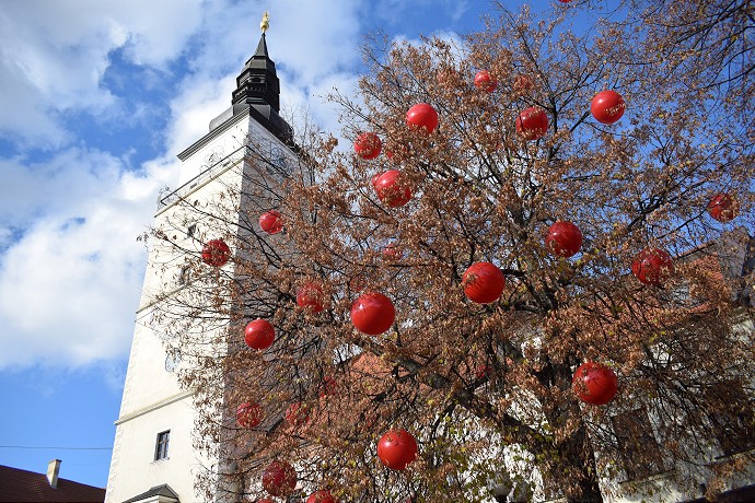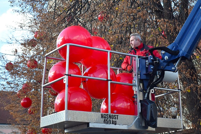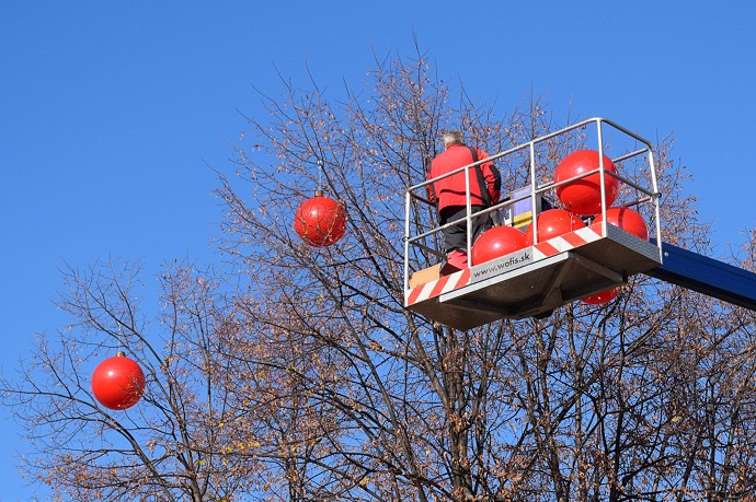 V centre mesta pribúda aj nová vianočná výzdoba. Na stromoch na Trojičnom námestí visia červené nafukovacie gule, ktoré sú z materiálu pripomínajúceho fitlopty.