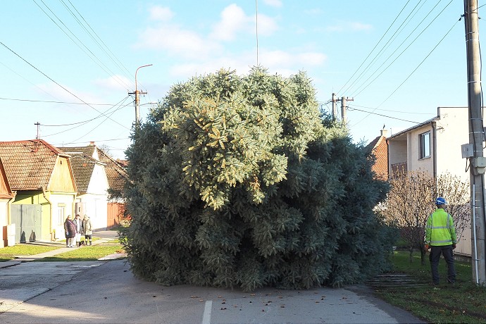 Krásny smrek pichľavý stojí opäť po roku na Trojičnom námestí v Trnave. Vypílili ho v Brestovanoch, mestu ho daroval Trnavčan Miroslav Laho. V Brestovanoch má pozemok, na ktorom pred troma desaťročiami smrek vysadil.