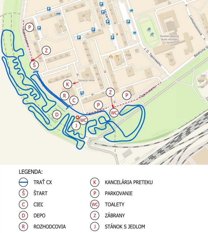 Trať povedie čiastočne po asfaltovej ceste na Čajkovského ulici a najmä po trávnatých plochách na konci Parku Janka Kráľa.