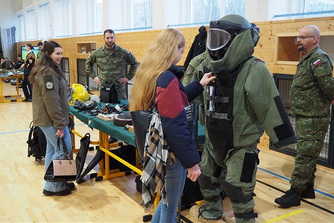Vojaci prišli na Deň otvorených dverí na SOŠ obchodu a služieb s atraktívnymi ukážkami svojich činností. FOTO: Pavol Machovič