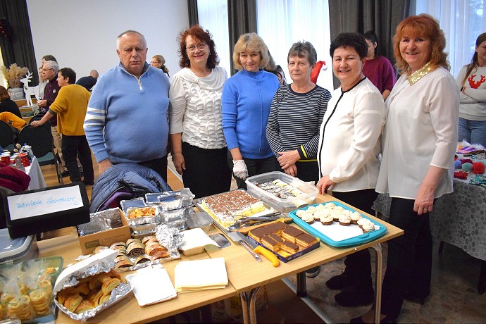 Združenie dôchodcov zo Suchej nad Parnou napieklo tradičné koláče ako krémeše, medové rezy, linecké kolieska a iné, ktoré ponúkali za symbolickú cenu.