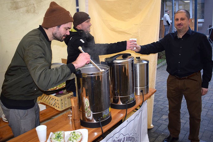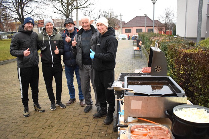 Pred vstupom do kultúrneho domu rozvoniavala cigánska, klobásky a iné dobroty, ktoré pripravovali miestni futbalisti. Spolok vinárov zabezpečil alko i nealko punč, vrátane vareného vína.