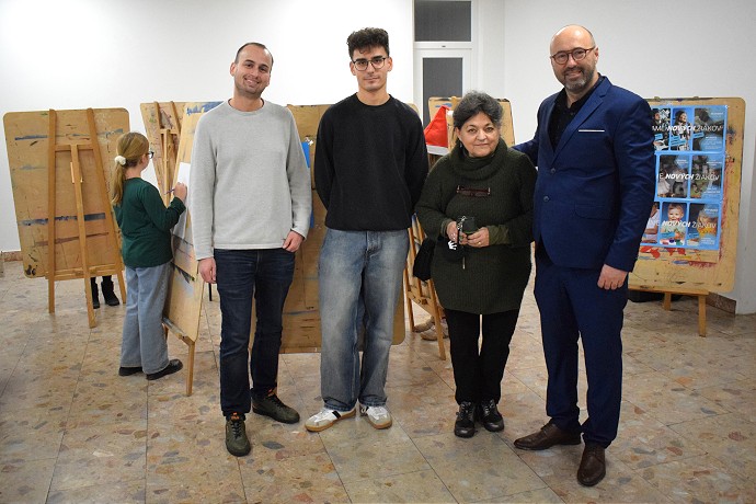 Súkromnú základnú umeleckú školu v Suchej vedie Juraj Dudáš (vpravo v modrom). Zľava jeho kolegovia Ondrej Krajčovič, Igor Srhoň a Adrienne Balász.