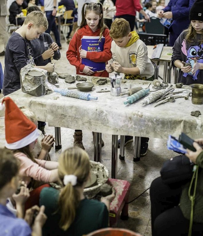 Deti si mohli vyskúšať aj výrobu z hliny na hrnčiarskom kruhu. Foto: Kamila Královičová