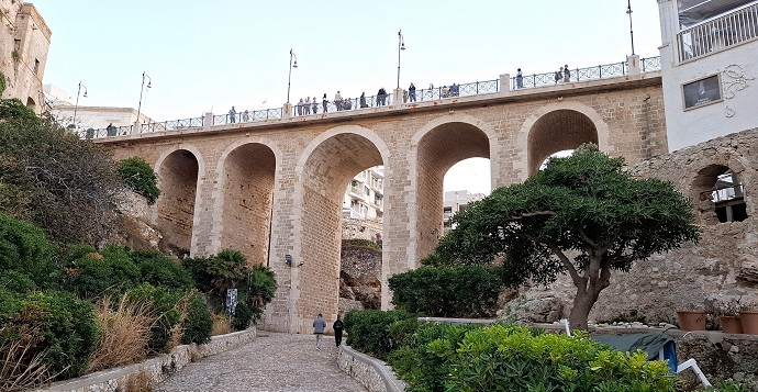 Starobylý most v Polignane, z ktorého je krásna vyhliadka na pláž.