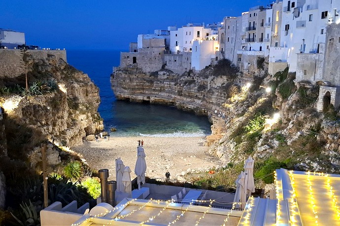 Polignano a Mare mi kamarátka znalá talianskych pomerov opísala ako šperk Apúlie. Jej slová sa naplnili do bodky. Zo stanice k moru sa pohodlne dostanete peši za 10 minút, hlavný život je sústredený v okolí ikonickej pláže Lama Monachile, na ktorú je krásna vyhliadka zo starobylého rímskeho mosta.