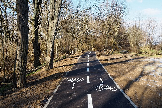 Popri nej je vysadených viac ako 50 nových vyrastených stromov, všetky sú pevne ukotvené. Súčasťou zákazky je aj výsev trávy popri cyklotrase.