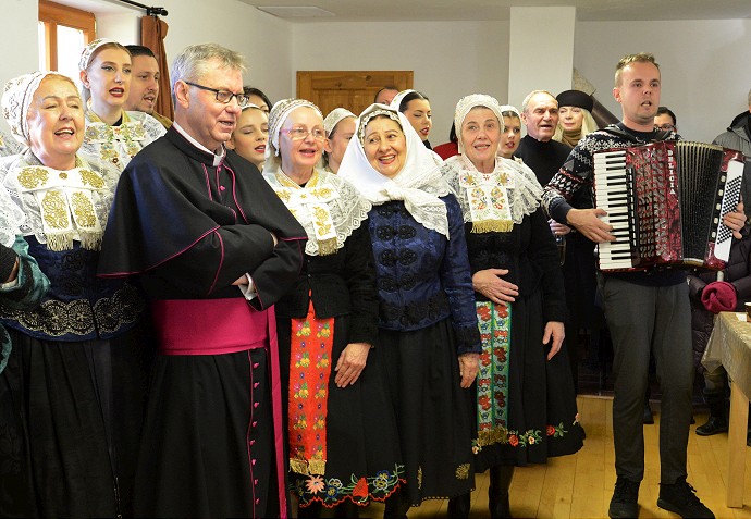 V priestoroch pastoračného farského centra sa s obľúbeným kňazom pri speve známych slovenských piesní lúčili aj členovia Folklórnej skupiny Cífer.