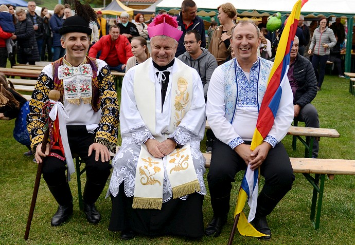 Počas Cíferských hodových slávností v roku 2022 v spoločnosti dvoch krojovaných starostov - domáceho Maroša Sagana (prvý zľava) a Slavomíra Posicka zo susednej obce Jablonec.