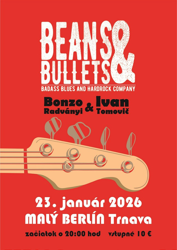 Koncert skupiny Beans & Bullets bude nielen prvým tohtoročným bluesrockovým koncertom v Malom Berlíne, ale odštartuje novú koncertnú sezónu aj v Trnave. Predpredaj vstupeniek je v CD Aquarius na Štefánikovej ulici.
