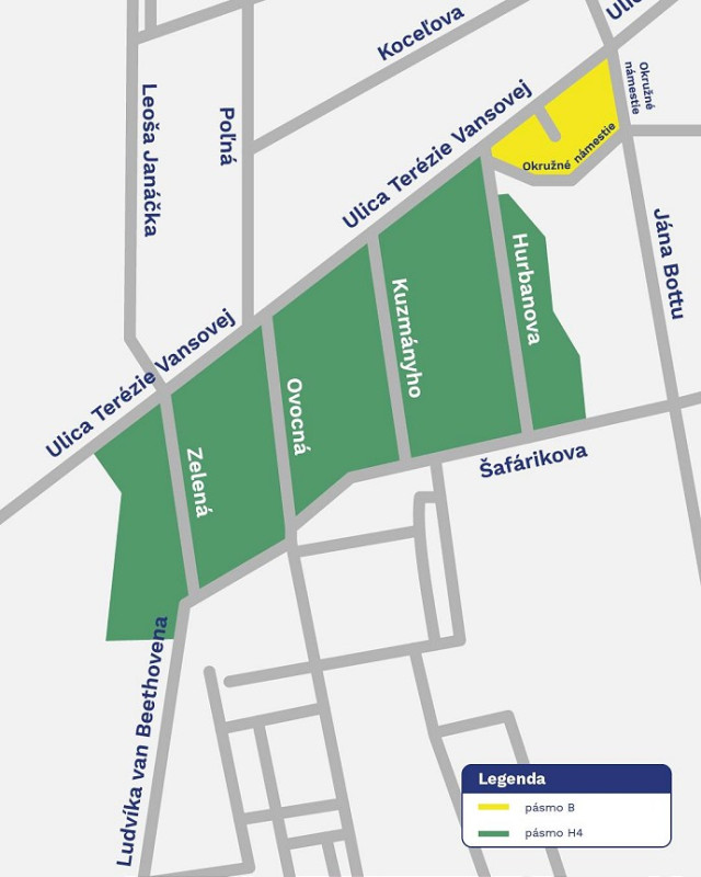 Okrem nových parkovísk typu B pribudnú od 2. februára aj dve nové parkovacie zóny H3 a H4. Ulica Krížová a časť Robotníckej bude novou zónou H3 a ulice Zelená, Ovocná, Kuzmányho, Hurbanova novou zónou H4.
