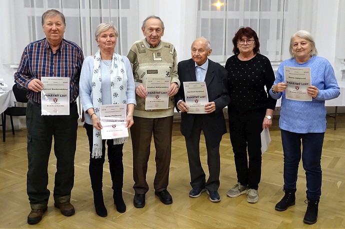 Ocenení zakladajúci členovia KST, ktorí sa zúčastnili na výročnej schôdzi. Zľava Peter Benkovský, Marta Piačková, Jozef Nižňanský, Karol Kováč, Kamila Benkovská a Marta Cáfalová.