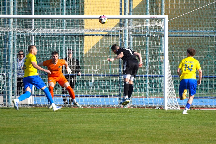 V závere rpvého polčasu mal gól na hlave Jakub Krč, v dobrej pozícii ale poslal loptu nad bránku. Foto: Ján Král