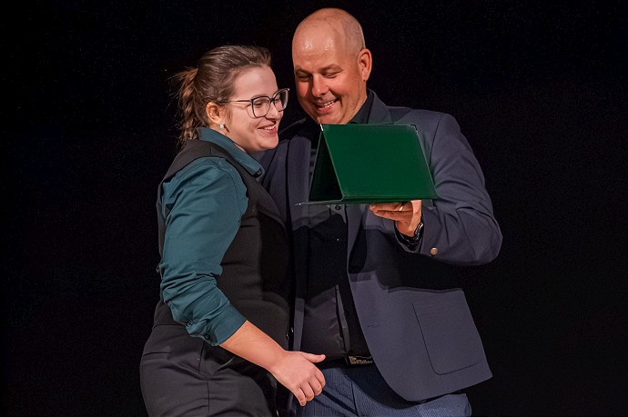 Na klubovom galavečeri Karolíne Friedrichovej odovzdal ocenenie prezident klubu Michal Novotný za výnimočný prínos pre klub. Foto: Rado Kadlubiak