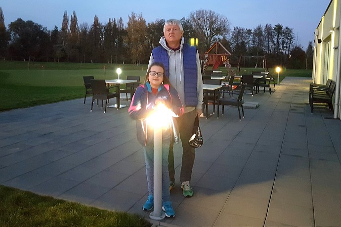 11. mája 2018. Vtedy osemročná Karolína Friedrichová s dedkom Zdeňkom prvýkrát v golfovom areáli. Foto: archív ZF