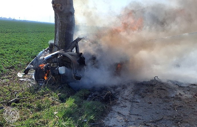 Smrteľná nehoda medzi Trnavou a Dolnou Krupou, vozidlo po náraze zhorelo