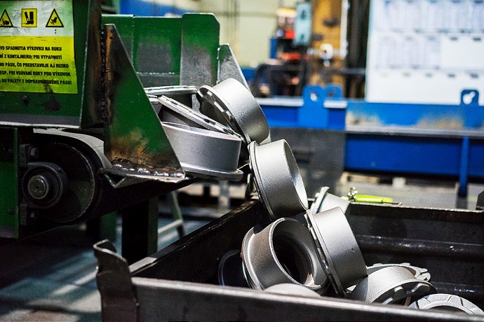 Výkovky sa v ňom premieľajú, narážajú do seba a zároveň na ne dopadá oceľový granulát. Takto sa čistí ich povrch a pripravujú sa na kontrolu.