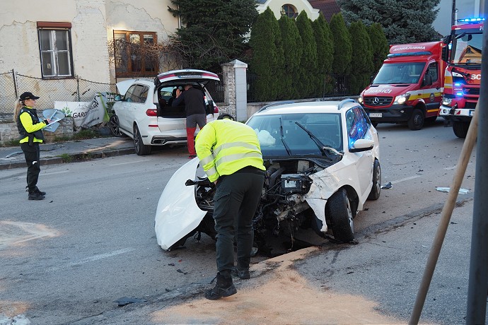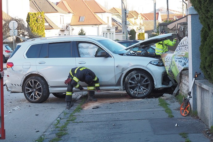 Jedno z vozidiel skončilo v múriku oplotenia.