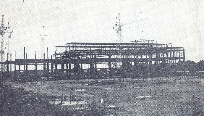 Historická fotografia ukazuje výstavbu Trnavskej kováčne v areáli TAZ, kde funguje dodnes.