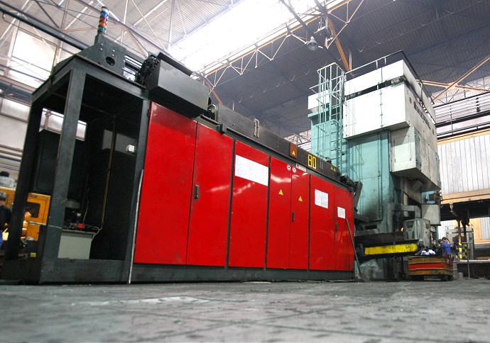 Kovacie zariadenie vo výrobnej hale kováčne.