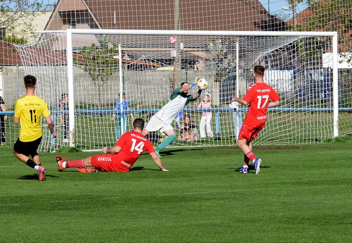 V tmavom strelec gólu Horných Orešian Tomáš Chudjak. Foto: Erika Blažová
