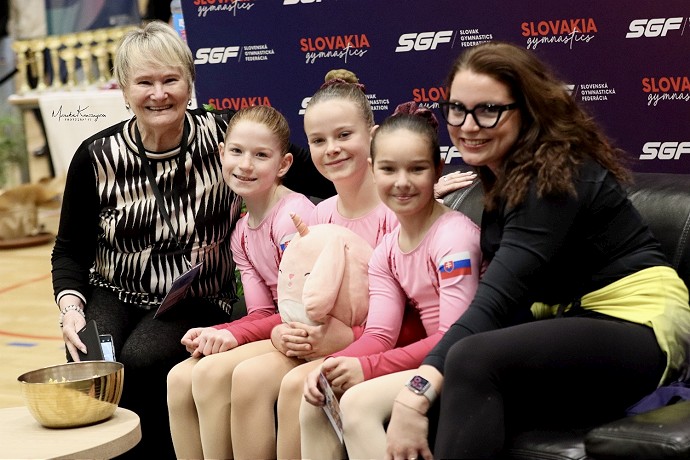 ND TR Valéria Juran, Dominika Semanková a Gabriela Nagyová s trénerkou Ninou Bestvinovou a bývalou olympionočnkou Mariannou Nemethovou - Krajšírovou. Foto: KGŠ Slávia