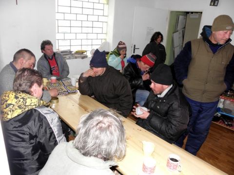 Utorok 7. februára dopoludnia, vonkajšia teplota mínus desať. Vo dvoch miestnostiach Centra pomoci človeku pri Helenke je však príjemne. Za stolmi sedí okolo dvadsať mužov a pár žien, vymrznutí príchodzí obracajú poháre s horúcim nápojom v dlaniach. Skupinka chlapov hrá karty, iní sa potichu zhovárajú, väčšina je však pohrúžená do vlastných myšlienok.