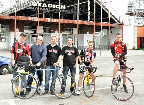 "Účastníci zájazdu," na bicykloch pred Štadiónom Antona Malatinského. Foto: archív šh